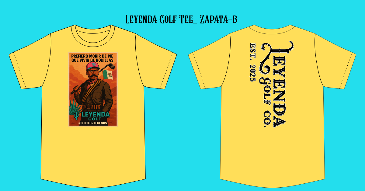Introducing the Zapata Drop – a tribute to grit, independence, and Texas golf pride. This limited-time tee features El Jefe / Zapata—mustache strong, stare stronger—ready to take on any course or cause.